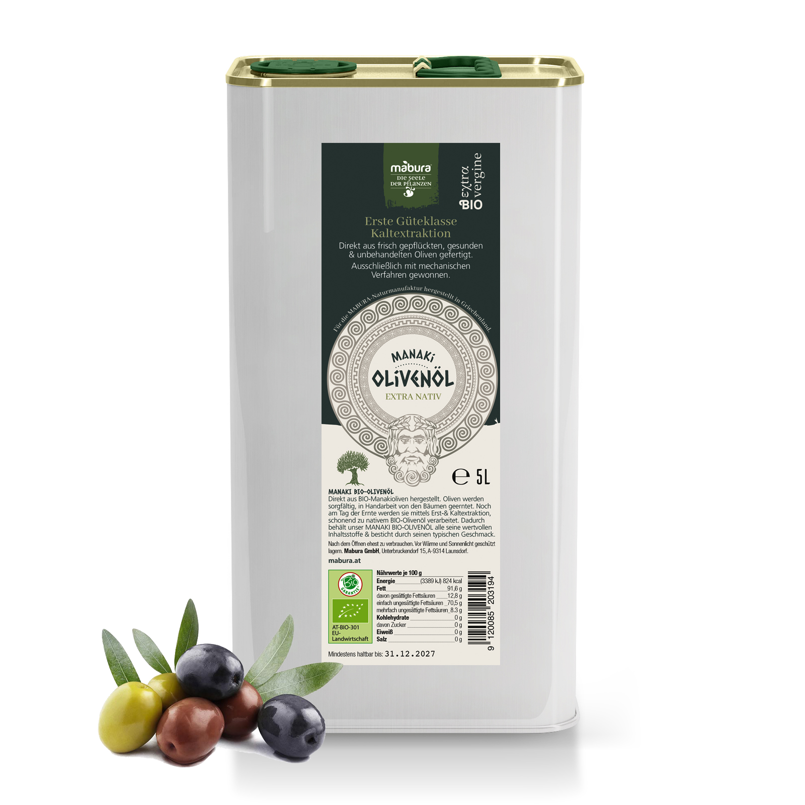 Neben der klassischen 500-ml-Flasche gibt es das Manaki Olivenöl BIO jetzt auch im 5-Liter-Kanister. Ideal für Großverbraucher, Hobbyköche und alle, die täglich auf hochwertiges Olivenöl setzen. Mit dem größeren Kanister sparst du nicht nur Geld, sondern reduzierst auch Verpackungsmaterial – eine nachhaltige Wahl für dich und die Umwelt.